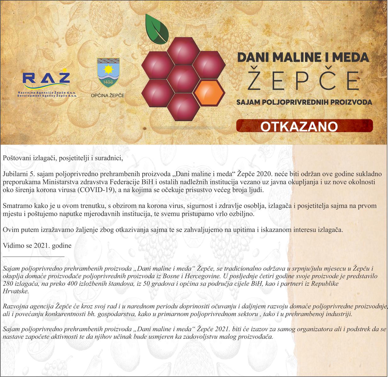 Otkazan sajam "Dani maline i meda"