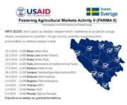USAID/Sweden FARMA II informira javnost da su potvrđene lokacije i vremenski okvir info sesija vezanih za Javni poziv za dodjelu bespovratnih sredstava za pružanje usluga obuke, savjetodavne podrške i druge stručne podrške organizacijama proizvođača iz sektora poljoprivrede. Sve zainteresirane organizacije se pozivaju da prisustvuju jednom od ovih sastanaka (dolazak potvrditi putem e-maila grants@farmabih.ba do 20. ožujka/marta). […]