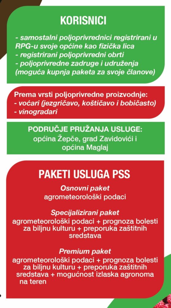 Pozivamo Vas da se priključite 𝐏𝐨𝐥𝐣𝐨𝐩𝐫𝐢𝐯𝐫𝐞𝐝𝐧𝐨𝐦 𝐬𝐚𝐯𝐣𝐞𝐭𝐨𝐝𝐚𝐯𝐧𝐨𝐦 𝐬𝐞𝐫𝐯𝐢𝐬𝐮 kroz pakete usluga koje vam nudi Tim agronoma RAŽ-a. Sezonski način rada PSS nam omogućava praćenje cijelog ciklusa proizvodnje gdje Vam nudimo redovne obavijesti vremenskih prilika s agrometeoroloških stanica, preporuke zaštite bilja, gnojidbe i navodnjavanja, te mogućnost terenske posjete agronoma.