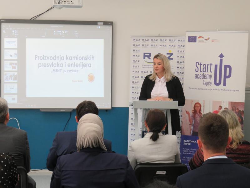 Na svečanosti dodjele certifikata polaznicima 4. Start up akademije koja je održana u Centru poslovnih kompetencija Žepče, prezentirane su tri poslovne ideje i to „Proizvodnja kamionskih presvlaka i enterijera „MENT presvlake” – vlasnica Enesa Mukić, „Digitalni marketing“ Ivana Marković i Sanida Hasić – biznis ideja „Izrada i prodaja torti i kolača – Le Torte”.